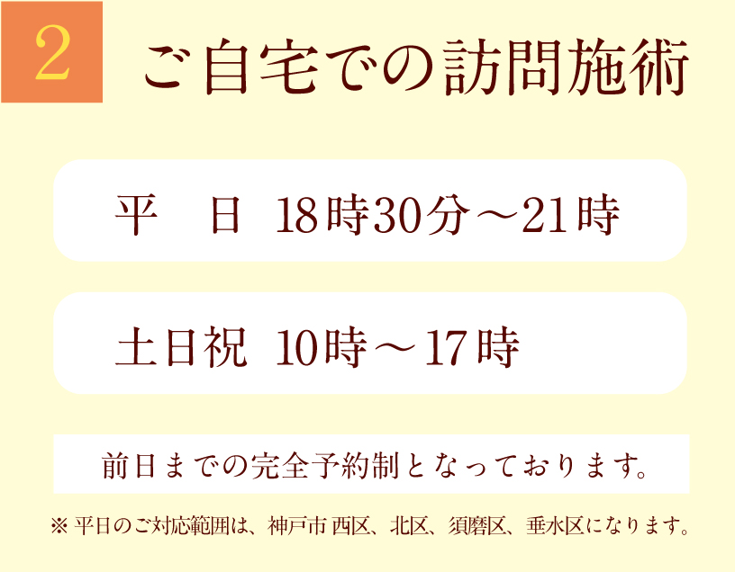 [平日のご対応範囲]神戸市 西区、北区、須磨区、垂水区になります。